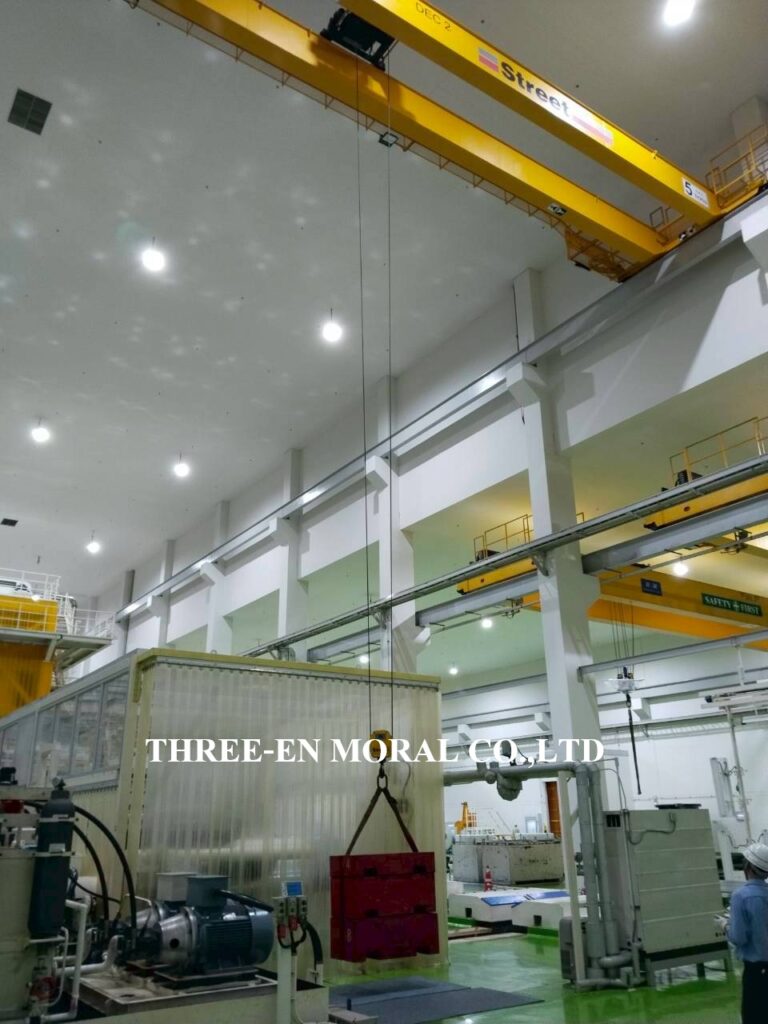 ทีมวิศวกรได้เข้าไปตรวจสอบและทดสอบเครนเหนือศรีษะ หรือโอเวอร์เฮดเครน (Overhead Crane) โรงงานลูกค้า ตรวจเช็คระบบการใช้งานต่างๆของปั้นจั่น รอก เครน ตรวจวัดขนาดโซ่ ดูการชำรุดสึกหรอ สัญญาณเสียงและแสงไฟเตือน ความสว่างของไฟ และระบบเสียงเตือนได้ยินชัดเจน พร้อมทดสอบพิกัดการยก (Load test) โดยการใช้น้ำหนักจริงเพื่อทดสอบการยกอย่างปลอดภัย