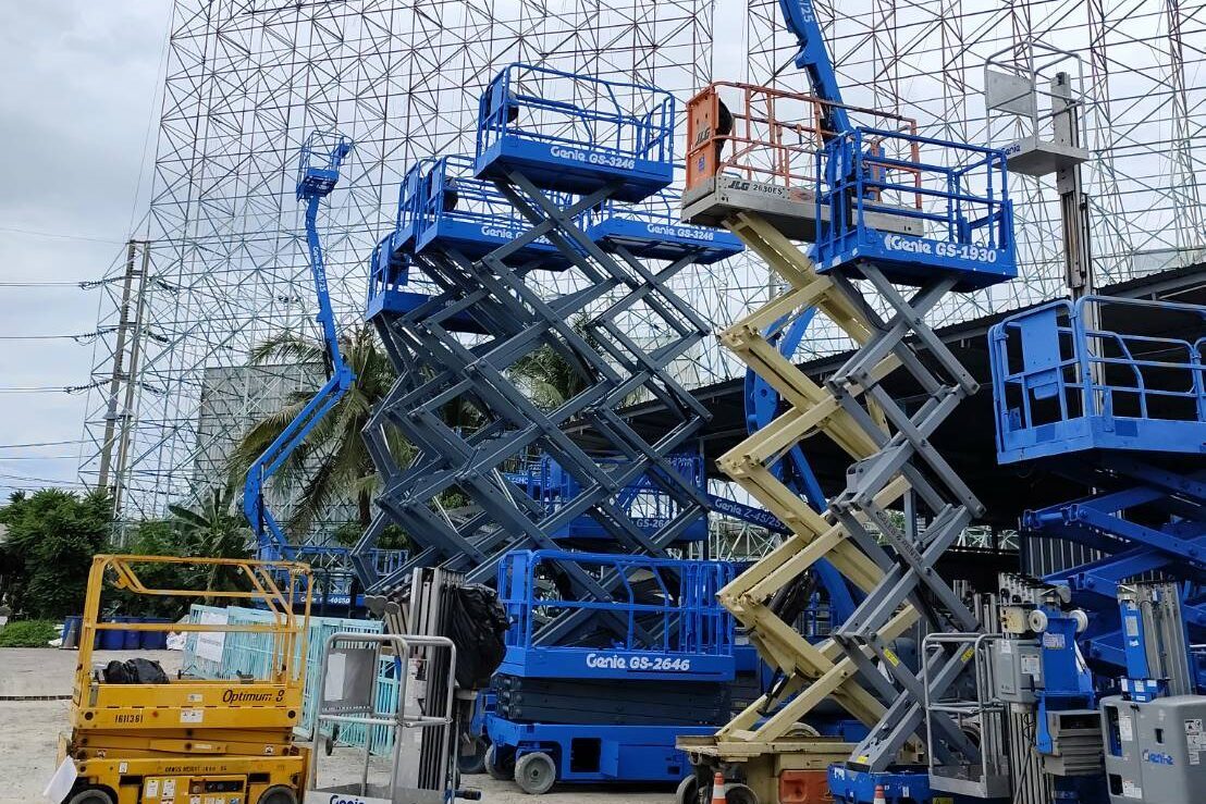 มีแขนยืดหรือพับได้ สามารถเข้าถึงพื้นที่ที่อยู่สูงและห่างจากฐานได้ เหมาะกับงานติดตั้งหรือซ่อมบำรุงนอกอาคาร - รถกระเช้าแบบกรรไกร (Scissor Lift)