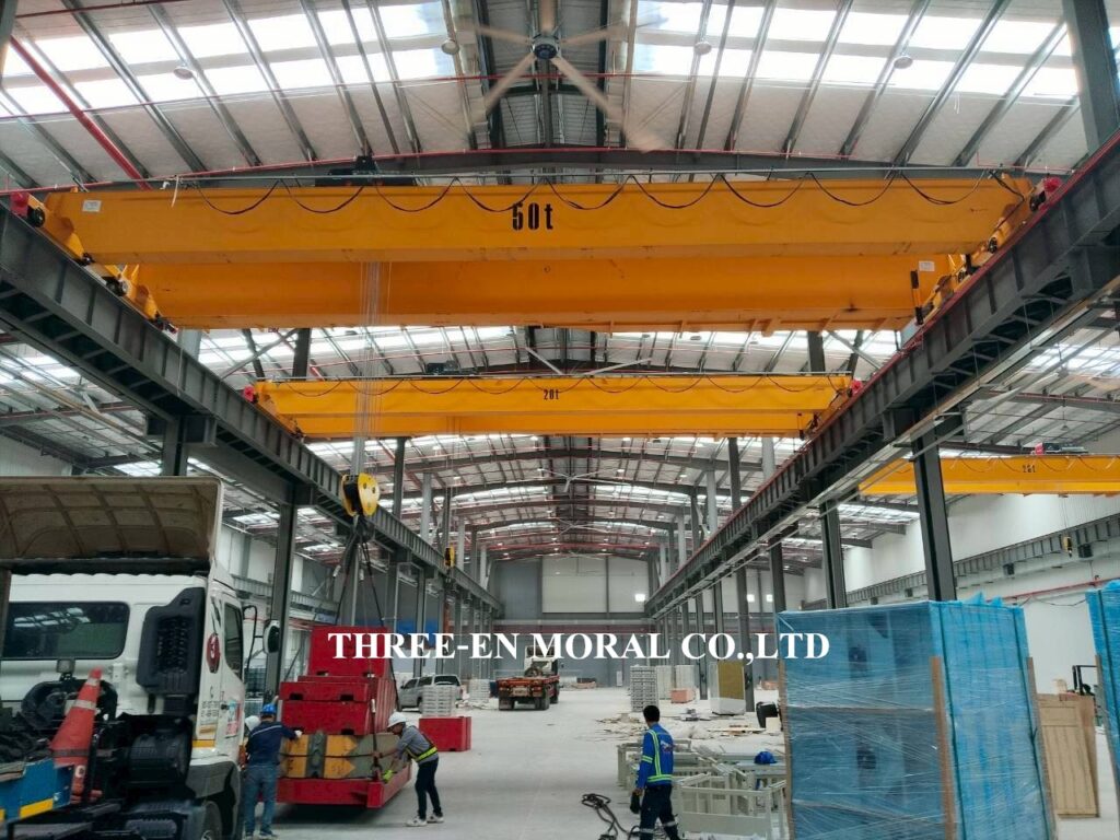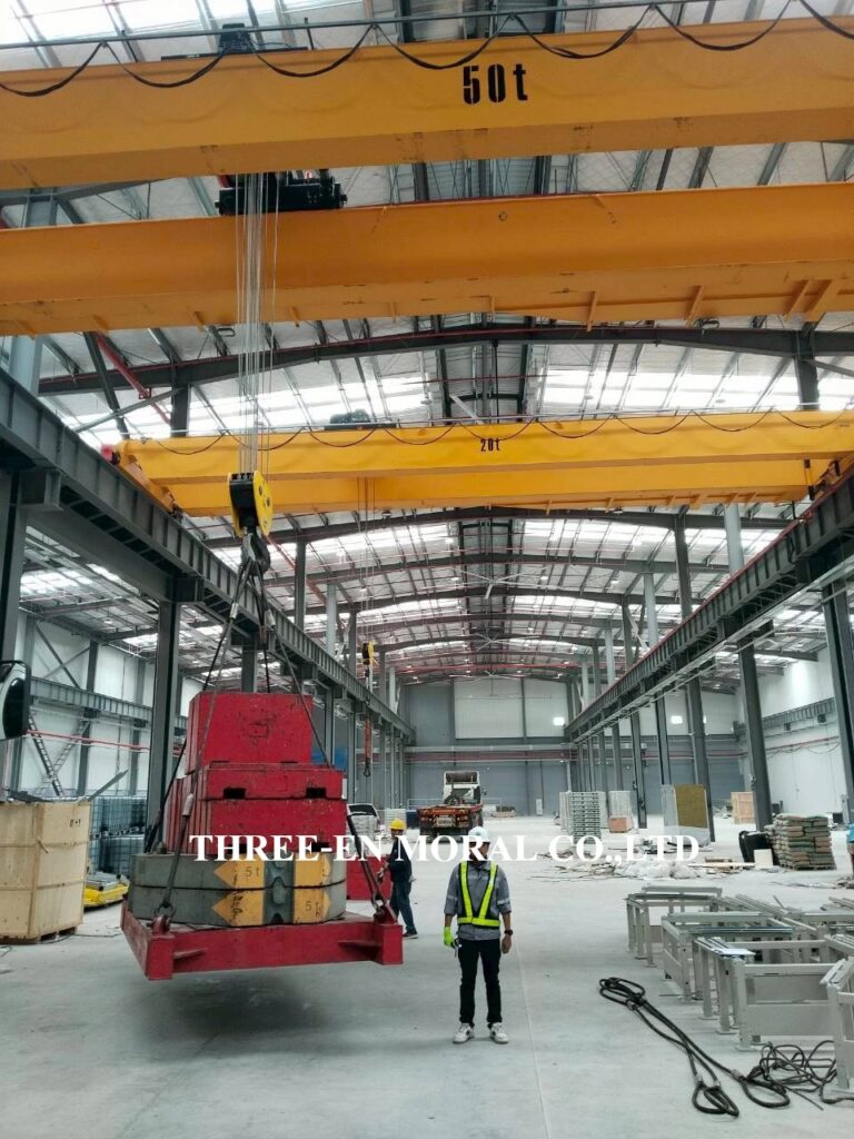 ทีมวิศวกรได้เข้าไปตรวจสอบและทดสอบเครนเหนือศรีษะ หรือโอเวอร์เฮดเครน (Overhead Crane) โรงงานลูกค้า ตรวจเช็คระบบการใช้งานต่างๆของปั้นจั่น รอก เครน ตรวจวัดขนาดโซ่ ดูการชำรุดสึกหรอ สัญญาณเสียงและแสงไฟเตือน ความสว่างของไฟ และระบบเสียงเตือนได้ยินชัดเจน พร้อมทดสอบพิกัดการยก (Load test) โดยการใช้น้ำหนักจริงเพื่อทดสอบการยกอย่างปลอดภัย