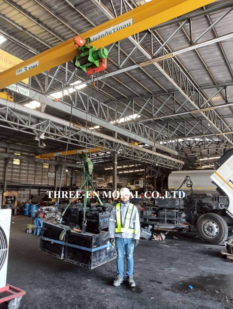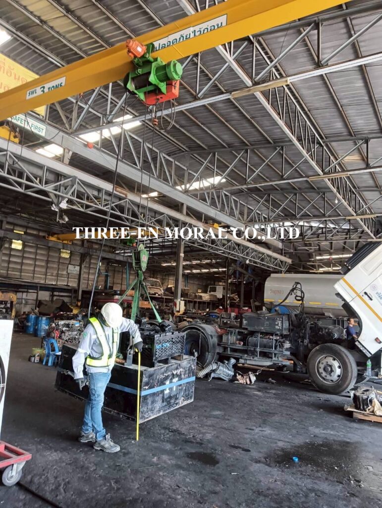 ทีมวิศวกรได้เข้าไปตรวจสอบและทดสอบเครนเหนือศรีษะ หรือโอเวอร์เฮดเครน (Overhead Crane) โรงงานลูกค้า ตรวจเช็คระบบการใช้งานต่างๆของปั้นจั่น รอก เครน ตรวจวัดขนาดโซ่ ดูการชำรุดสึกหรอ สัญญาณเสียงและแสงไฟเตือน ความสว่างของไฟ และระบบเสียงเตือนได้ยินชัดเจน พร้อมทดสอบพิกัดการยก (Load test) โดยการใช้น้ำหนักจริงเพื่อทดสอบการยกอย่างปลอดภัย